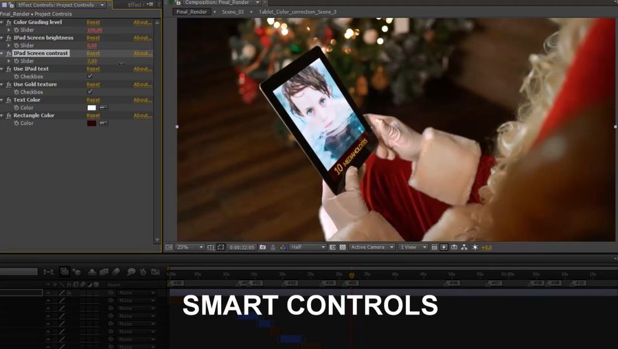 Готовый рождественский и новогодний проект для After Effects — идеальное решение для создания праздничных видеороликов с Дедом Морозом, держащим волшебный iPad. Проект выполнен в разрешении 4K, включает 19 сцен, текстовые и медиа-заполнители, а также прост в настройке. Подходит для редактирования в Adobe After Effects CS6 и выше без необходимости установки плагинов.