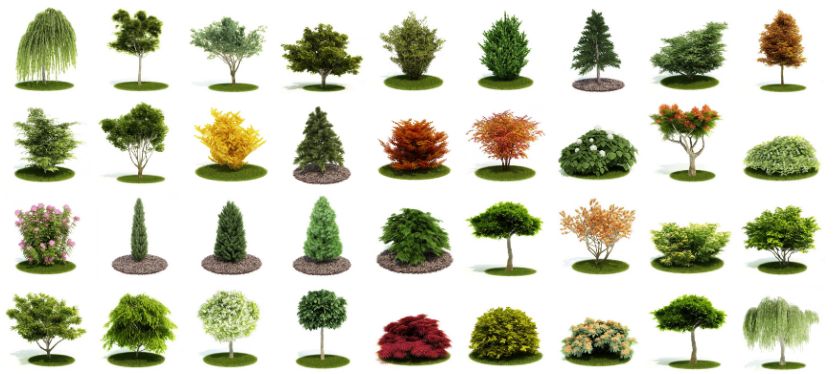 - Коллекция включает 60 моделей деревьев и кустарников, оптимизированных под фотореалистичную визуализацию