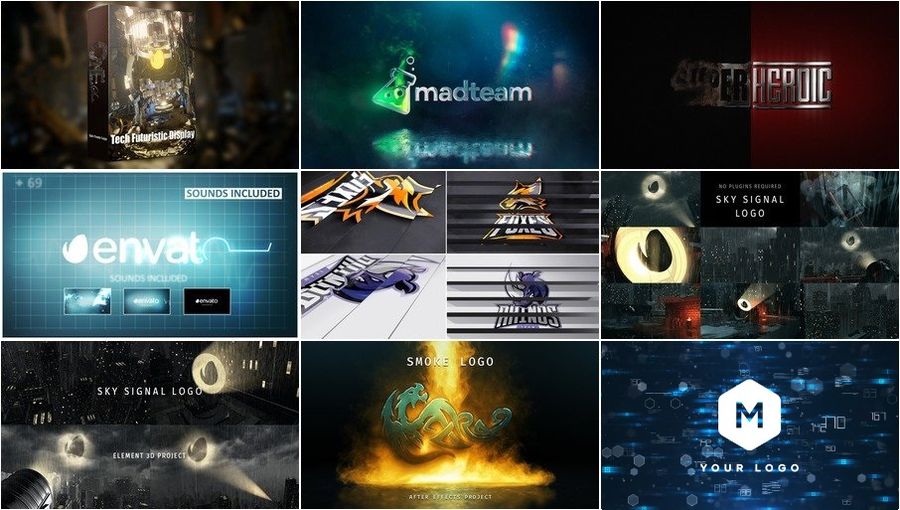 - Наличие проектов с дымовыми эффектами, отражениями и частицами, например, Smoke Logo и Panel Flip Logo Reveal