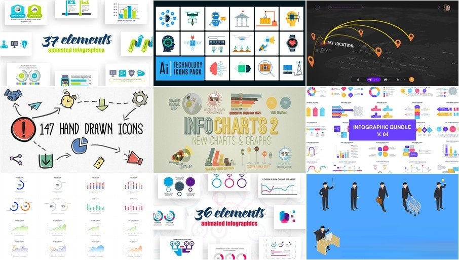 Данный сет представляет собой подборку из девяти шаблонов, разработанных на платформе VideoHive и адаптированных под среду After Effects. Все проекты созданы с высокой детализацией и обеспечивают простоту интеграции в любые видео- или слайд-работы. Пользователи получают доступ к таким инструментам, как Abstract Infographics Vol.26, InfoCharts 2 и Isometric People, что значительно расширяет возможности визуализации данных. Каждый элемент продуман до мелочей и поддерживает настройку цвета, анимации и шрифтов.