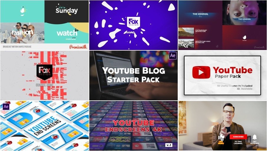 - YouTube EndScreens 4K v.1 и YouTube EndScreen позволяют создавать профессиональные заставки в высоком разрешении