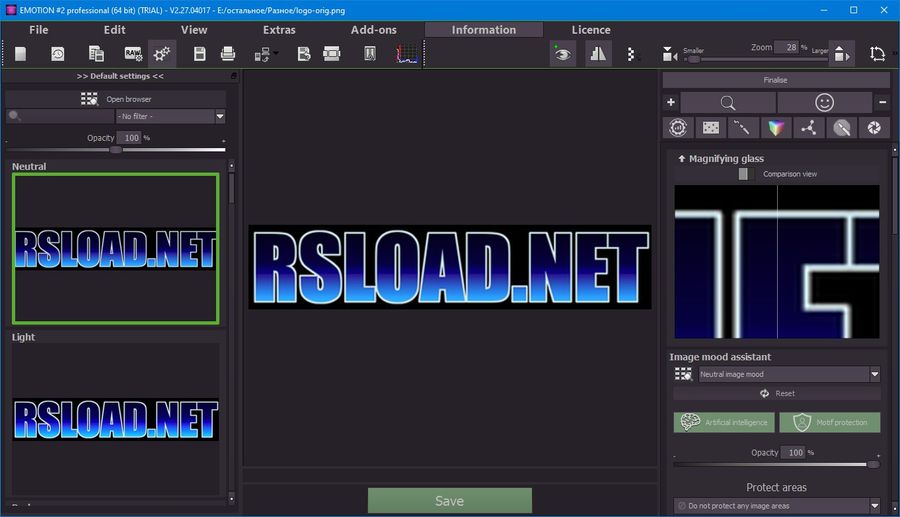 Franzis EMOTION #2 Pro сочетает в себе передовые технологии обработки изображений и удобство использования. Программа эффективно справляется с задачами цветокоррекции, стилизации и художественного преобразования фотографий. Высокая степень автоматизации позволяет достичь впечатляющих результатов даже новичкам. При этом продвинутые пользователи получают широкие возможности для ручной настройки и экспериментов. Присутствует поддержка различных форматов изображений, включая RAW, что делает её универсальным решением.