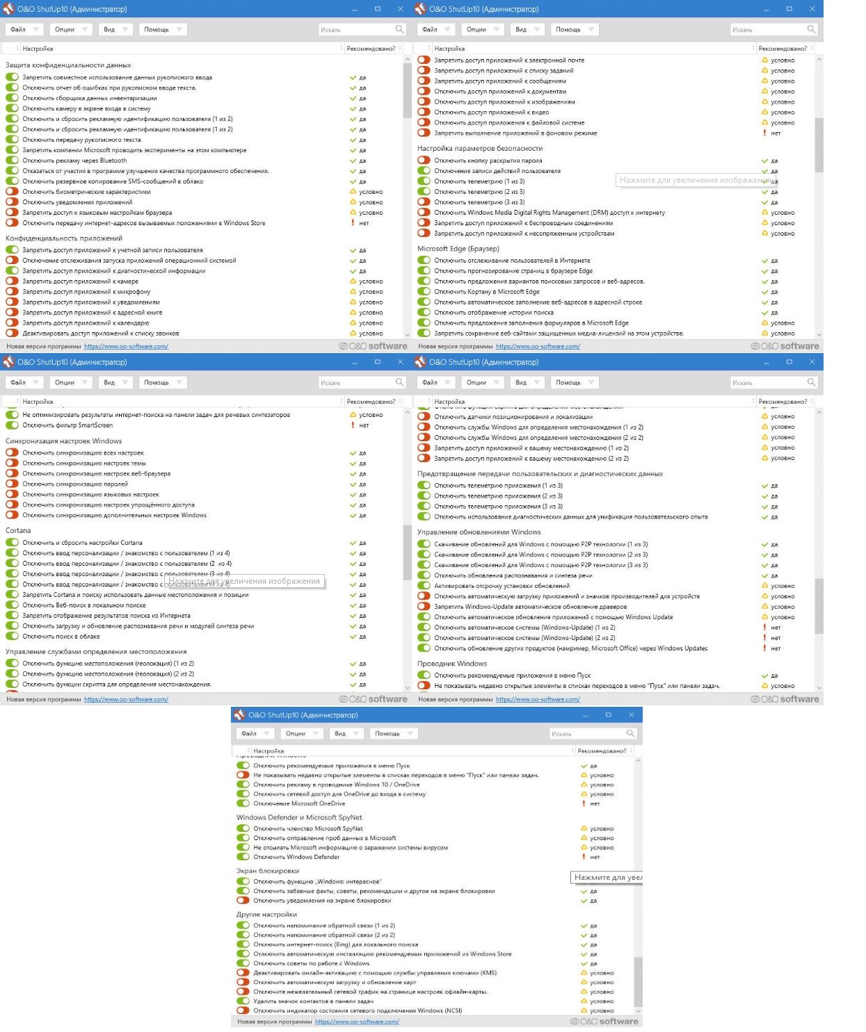 - Отключение шпионских модулей, телеметрии и фоновых служб, мешающих производительности.