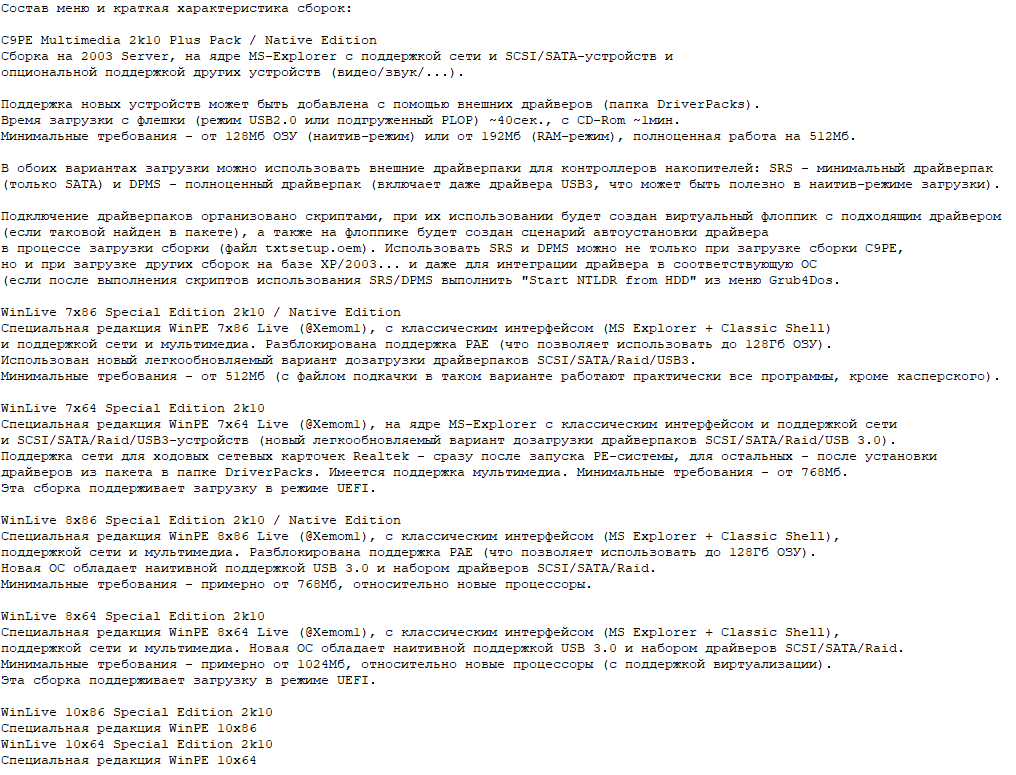 - Интегрированные средства для создания и разворачивания образов системы с помощью таких программ, как 78setup и WinSetup2k10