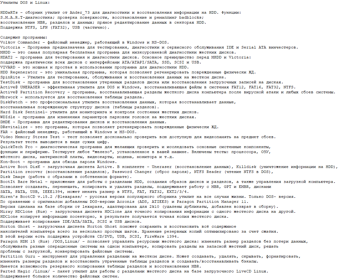 - Обновлённый программный пакет, содержащий сотни утилит для диагностики, настройки и обслуживания ПК