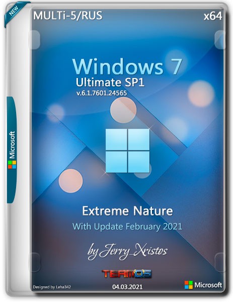 Сборка Windows 7 Ultimate SP1 x64 6.1.7601.24565 Extreme Nature от автора Jerry_Xristos представляет собой модифицированный образ операционной системы с предустановленными обновлениями, оптимизациями и дополнительными компонентами. Версия основана на официальном оригинальном дистрибутиве Microsoft и включает в себя важные пакеты обновлений по февраль 2021 года. Пользователи могут скачать данный iso-образ бесплатно, установить на флешку или виртуальную машину, а также выбрать один из пяти языков интерфейса, включая русскую локализацию.