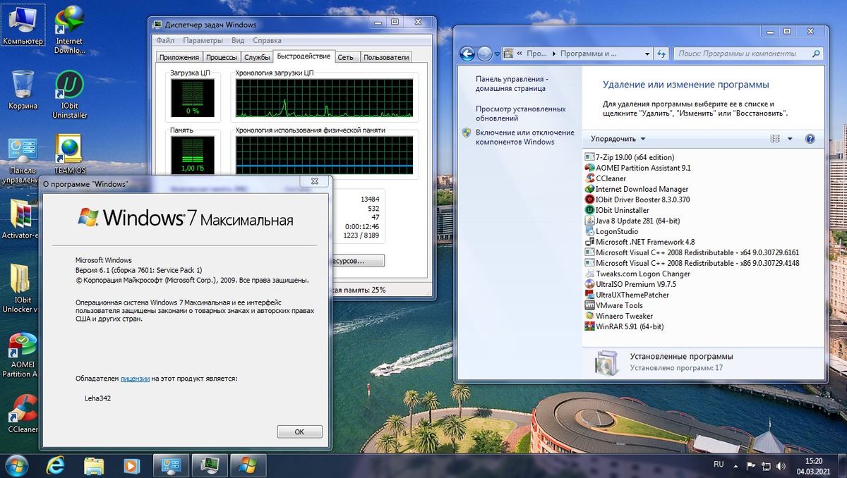 - Предустановленный пакет полезных программ: 7-Zip, WinRAR, CCleaner, IObit Driver Booster и другие