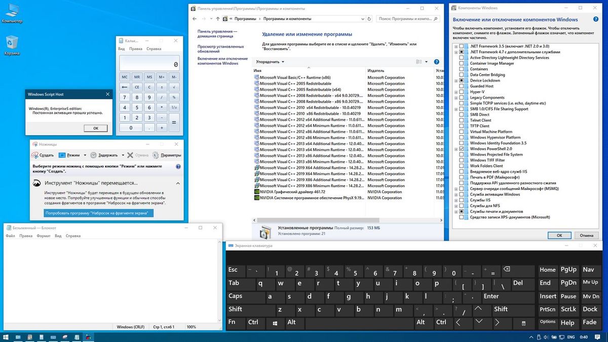 Windows 10 Enterprise LTSC x64 1809 — это стабильная корпоративная сборка операционной системы, ориентированная на долгосрочное использование без лишних обновлений и телеметрии. Сборка от Tatata основана на оригинальном образе Microsoft, интегрированы важные обновления на 2021 год, отключены ненужные службы и компоненты. Подходит для тех, кто ценит производительность, контроль и минимализм в Windows.