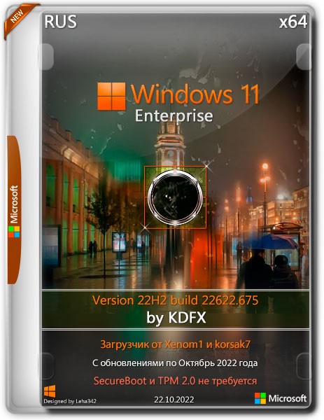 Windows 11 Enterprise x64 v22H2 22622.675 от KDFX — это модифицированная, оптимизированная и готовая к использованию сборка операционной системы от Microsoft, ориентированная на корпоративных пользователей и тех, кто ценит стабильность, безопасность и расширенные возможности администрирования. Версия основана на официальном оригинальном образе Windows 11 Enterprise с накопленными обновлениями на 22 октября 2022 года. Установка возможна на любое оборудование благодаря отключённым автором ограничениям, связанным с TPM, Secure Boot и объёмом оперативной памяти. Сборка идеально подойдёт для повседневного использования, работы с офисными приложениями, интернета и требовательных задач.