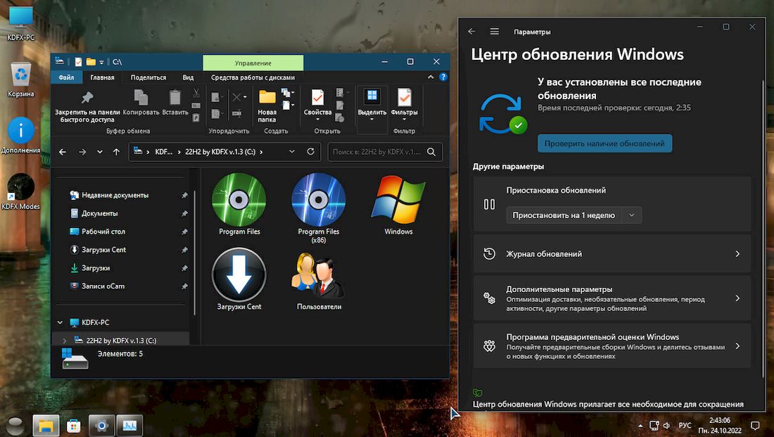 - Интегрированы обновления Microsoft по 22 октября 2022 года, что делает систему актуальной на уровне 22H2