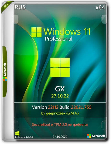 Windows 11 Pro x64 22H2.22621.755 от GX — это модифицированная сборка популярной операционной системы Microsoft, оптимизированная под русскоязычных пользователей. Образ основан на официальной версии Windows 11 Pro и включает все обновления до октября 2022 года, что делает его стабильным и безопасным решением для повседневного использования. Сборка поставляется с предустановленной активацией, отключённой телеметрией и рядом полезных изменений, улучшающих производительность и пользовательский опыт.