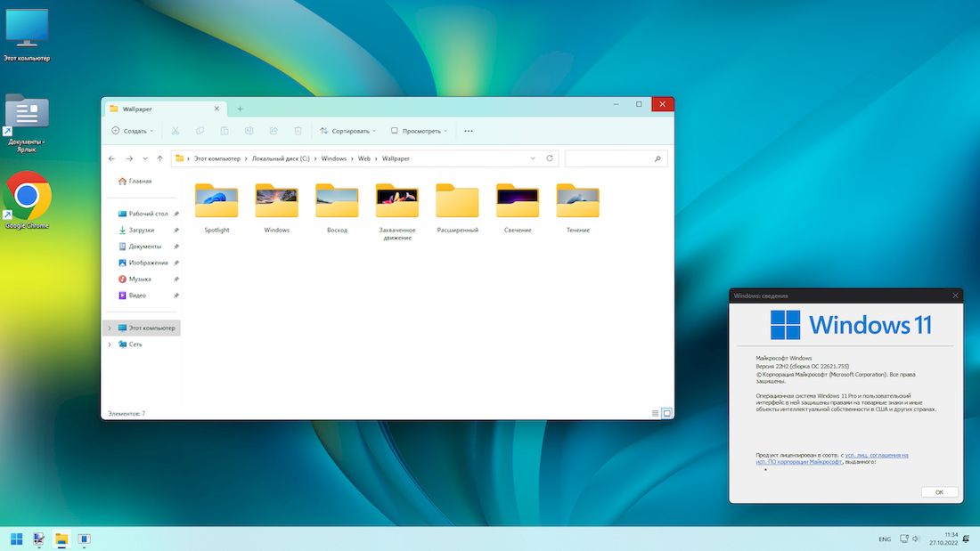 - Операционная система построена на официальном образе Microsoft Windows 11 22H2 и была модифицирована с сохранением корректной работы всех ключевых функций.