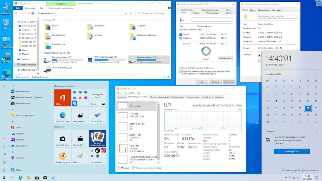 Сборка Windows 10 от OVGorskiy — это тщательно проработанный репак версии 22H2 с интегрированными обновлениями и необходимыми компонентами. Операционная система построена на основе оригинального образа от Microsoft, в который включены актуальные исправления безопасности, улучшения стабильности и производительности. Образы распространяются в варианте 8in2 (AIO), что означает — одна сборка объединяет восемь редакций: домашнюю, профессиональную, корпоративную, а также их одноразрядные версии как для платформы x86, так и для x64. Это особенно удобно, когда требуется установить систему на разные компьютеры с разными архитектурами и задачами.