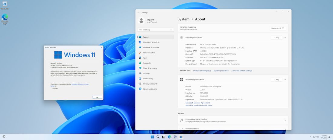 Windows 11 22H2 22621.819 36in1 x64 от adguard — это универсальный интегрированный образ операционной системы с предустановленными обновлениями по ноябрь 2022 года, который поддерживает широкий спектр конфигураций и позволяет обойти официальные системные требования Microsoft. Сборка основана на оригинальных UUP-файлах, содержит все редакции Windows 11, включая Home, Pro, Education, Enterprise и другие, и подойдёт как для установки на домашний компьютер, так и на ноутбук с минимальным объемом оперативной памяти или слабым железом. Образ доступен на русском и английском языках, и не требует интернета для активации — все необходимые компоненты уже включены.