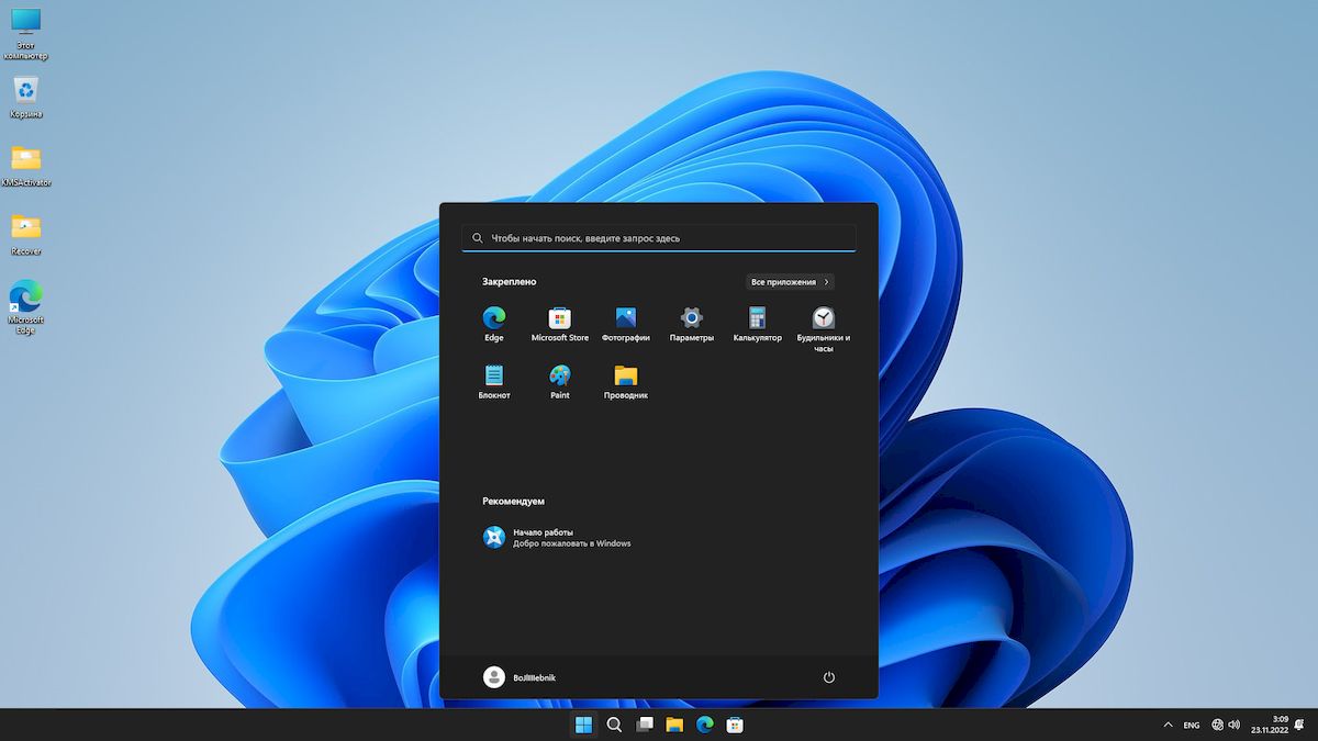 После установки Windows 11 Pro от BoJlIIIebnik, пользователь получает полностью готовую к работе операционную систему. Учётная запись создаётся локально, без привязки к интернету, что ускоряет настройку. Интерфейс работает в тёмной теме по умолчанию, на рабочем столе отображаются значки «Этот компьютер» и «Корзина», что упрощает навигацию. Все системные службы, отвечающие за отправку данных в Microsoft, отключены: телеметрия, SmartScreen, автоматический сбор статистики, отслеживание приложений и документов. Windows Defender деактивирован, но его легко можно включить через настройки, если потребуется временная защита. Обновления системы больше не устанавливаются автоматически — система лишь уведомляет о наличии, что позволяет пользователю самостоятельно решать, когда обновляться. Загрузка образа возможна через торрент или прямую ссылку, запись на флешку выполняется стандартными средствами, такими как Rufus или встроенный в Windows установщик.