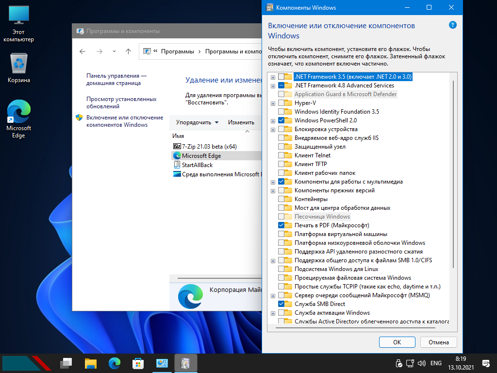 - Возможность выборочной интеграции компонентов, таких как Microsoft Store, .NET Framework 3.5, 7-Zip и StartAllBack.
