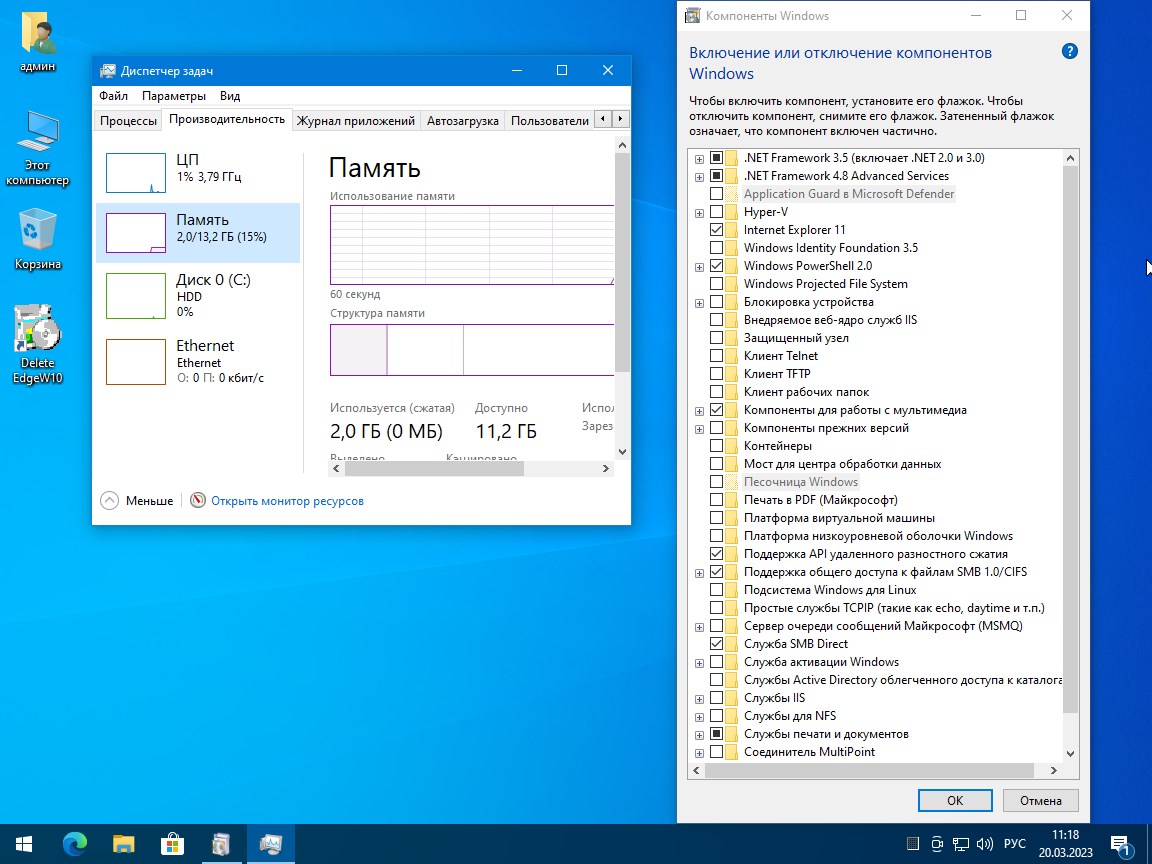 - Отключены службы телеметрии, SmartScreen, UAC и автоматические отчеты об ошибках
