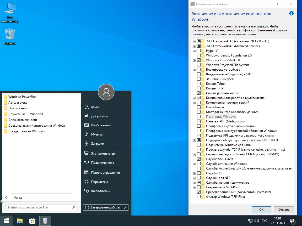 - В систему включены Net Framework 3.5, а также 2.0 и 3.0 для обратной совместимости со старым софтом
