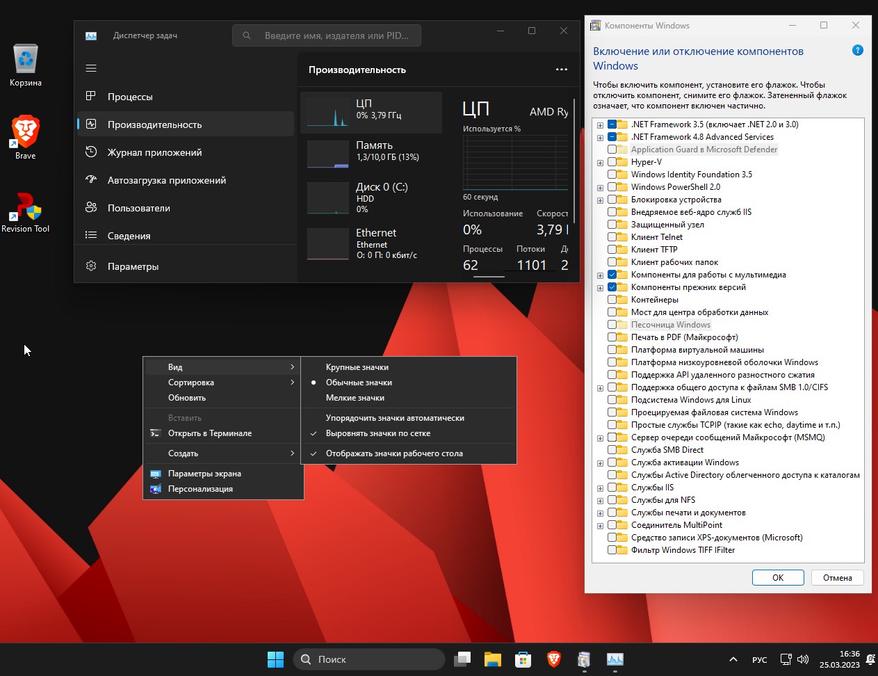 - На рабочем столе присутствует встроенная утилита Revision Tools для тонкой настройки параметров системы.