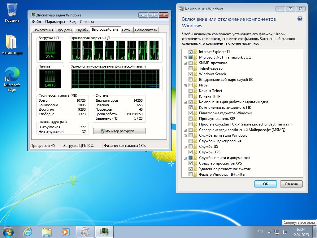 - Включены актуальные компоненты, такие как .NET Framework 4.8, Visual C++ 2005–2022 и последняя версия браузера Microsoft Edge