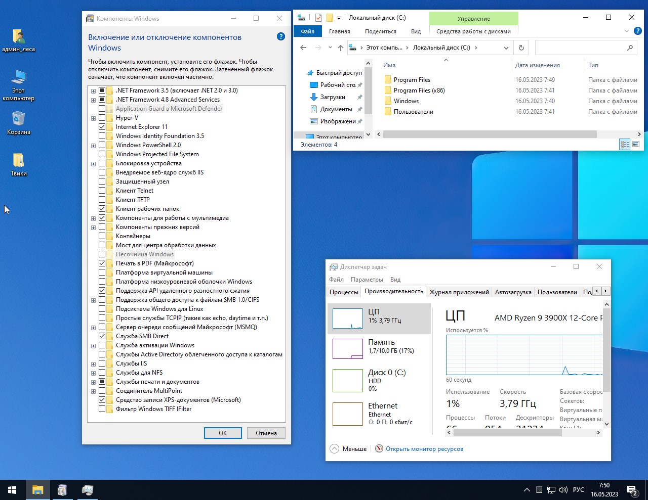 После установки операционная система готова к использованию. Поиск по системе работает через комбинацию клавиш Win+S, а все удалённые компоненты при необходимости могут быть восстановлены — например, Магазин приложений можно вернуть с помощью команды wsreset -i в консоли от администратора. В комплекте идёт папка с твиками, позволяющими настроить систему под конкретные задачи — от повышения производительности до максимальной экономии ресурсов. Все изменения вносятся через редактирование реестра, что обеспечивает безопасность и возможность отката. Обновления Windows устанавливаются вручную, что позволяет контролировать процесс и избегать нежелательных изменений. Также рекомендуется после первого запуска провести дефрагментацию, если установка выполнена на традиционный жёсткий диск.
