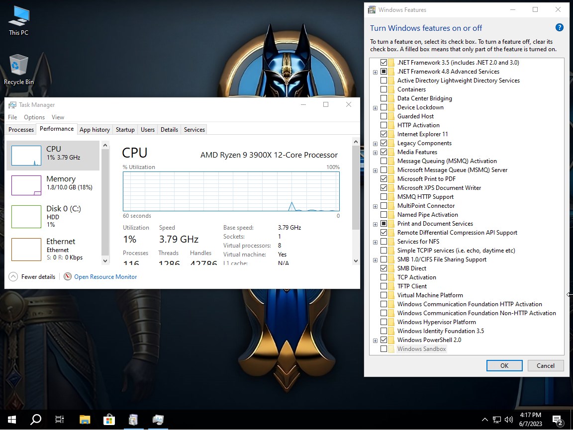 - Обладает предустановленными компонентами: .NET Framework 3.5, DirectPlay, классический проводник