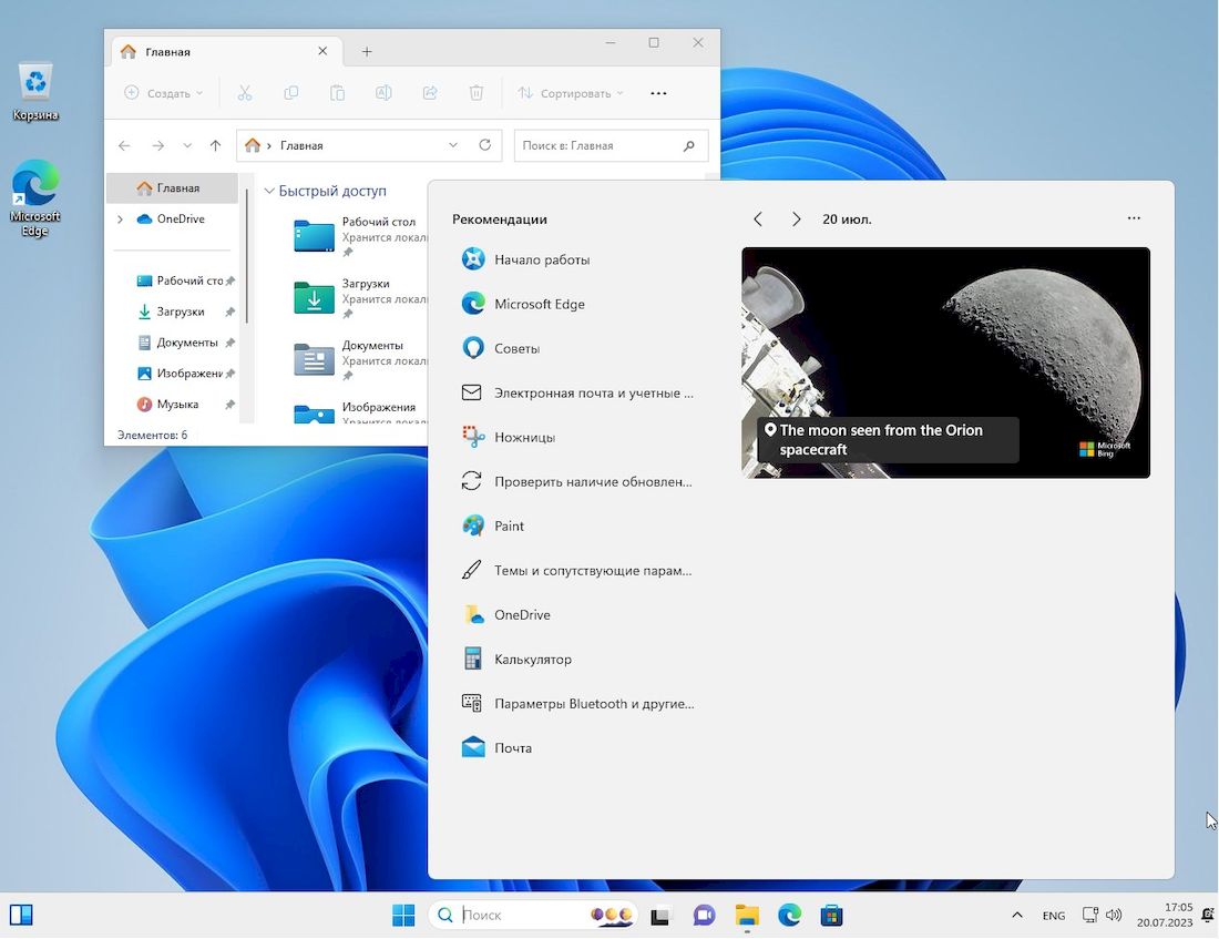 Данный образ Windows 11 на русском языке выпущен 19 июля 2023 года и основан на актуальных накопительных обновлениях. Сборка включает в себя девять различных редакций, что позволяет выбрать подходящий вариант для любого сценария использования — от домашнего ПК до корпоративной среды. Формат ISO весит 4.3 Гб и готов к записи на USB-носитель для установки. В системе отключены все проверки оборудования: не требуется UEFI, TPM 2.0, определённый объем оперативной памяти или жесткого диска, поэтому установка возможна даже на устаревшее железо. Процесс установки полностью автоматизирован, пропускает этап подключения к сети и создание учетной записи Microsoft — достаточно указать имя пользователя, и сразу открывается рабочий стол.