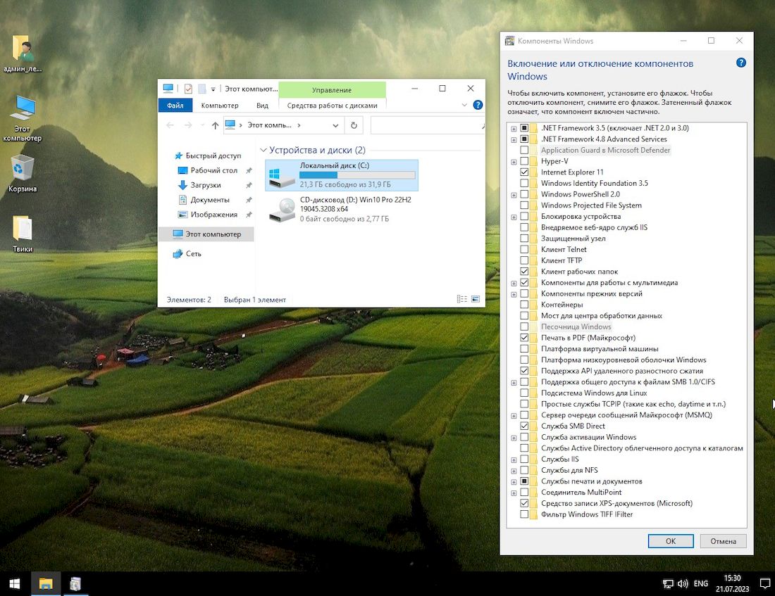 Сборка основана на официальном образе Windows_10_Pro_edition_22h2_x64 и включает в себя все актуальные обновления на момент выпуска — версия 19045.3208 от июля 2023 года. Операционная система поставляется с русским и английским языками, что позволяет пользователям гибко настраивать интерфейс под свои нужды. Активация не выполнена, поэтому пользователь может использовать собственный лицензионный ключ или сторонние инструменты активации, включая Aact, Microsoft Activation Scripts или другие. Это позволяет избежать привязки к учетной записи Microsoft и сохранить контроль над системой.