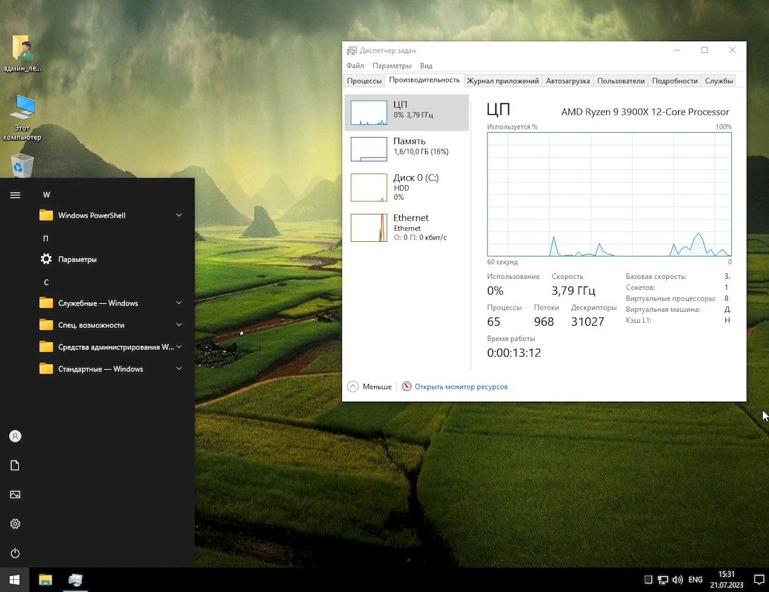 - Отключены службы телеметрии, рекламные модули и фоновые процессы, не несущие практической пользы