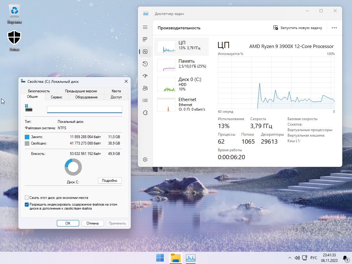 Сборка Windows 11 23H2 Lite Optimum 11 Pro демонстрирует высокий уровень оптимизации, что особенно важно для пользователей с ограниченными ресурсами. В отличие от стандартной версии Windows, здесь нет фоновых процессов, не влияющих на производительность. Благодаря отказу от TPM и Secure Boot, система доступна для более широкого круга устройств. В то же время, она остаётся стабильной, позволяет запускать тяжёлые приложения вроде AutoCAD и Photoshop, а также современные игры. Управление обновлениями полностью в руках пользователя — можно отложить их на десятки лет или включать выборочно. Интерфейс сохраняет фирменные черты Windows 11: эффект Mica, прозрачность, закруглённые углы.