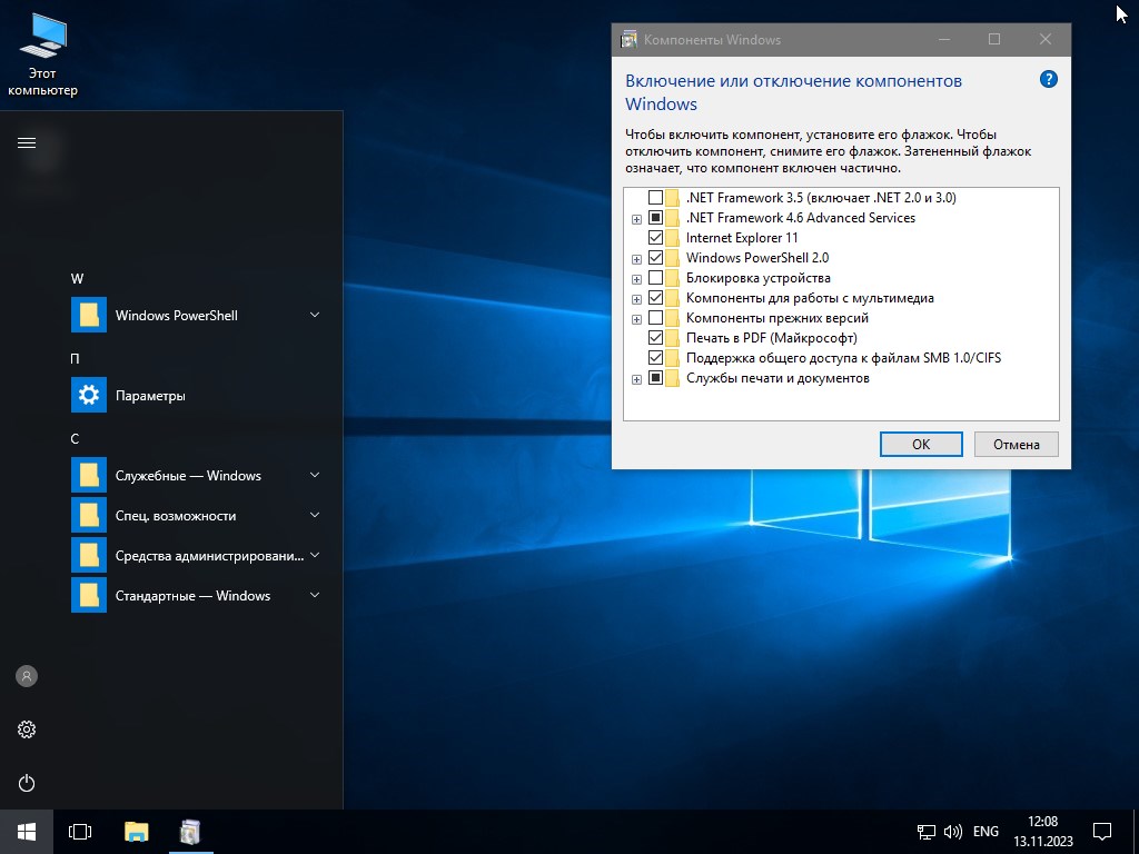Процесс установки максимально упрощён: после записи образа на USB с помощью UltraISO или Rufus, компьютер загружается с флешки, где начинается автоматическая установка. Пользователю не нужно выбирать язык, принимать лицензионное соглашение или указывать ключ — всё уже сделано заранее. После установки запускается лаунчер, где можно выбрать дополнительные настройки: отключение брандмауэра, файл подкачки, отключение SmartScreen, включение или отключение автозапуска драйверов. Также через консоль администратора можно вручную включить .NET Framework 3.5, вернуть UWP-приложения или включить EDGE, предварительно скачав их с официальных источников. Для пользователей, которым важен контроль, доступны команды для отключения обновлений, ускорения загрузки с HDD или возврата значков съёмных дисков на панель задач.