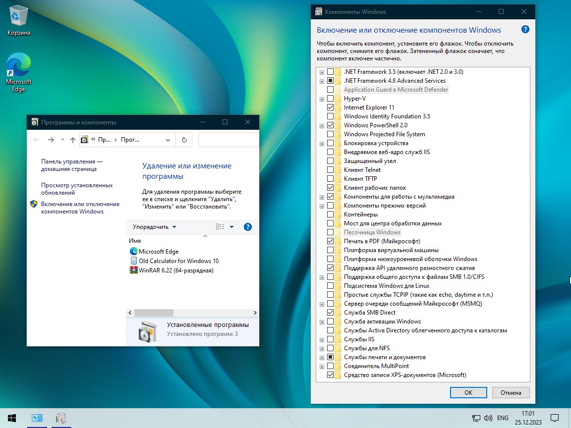- В комплекте предустановлены Edge, WinRAR и .Net Framework 3.5 для совместимости