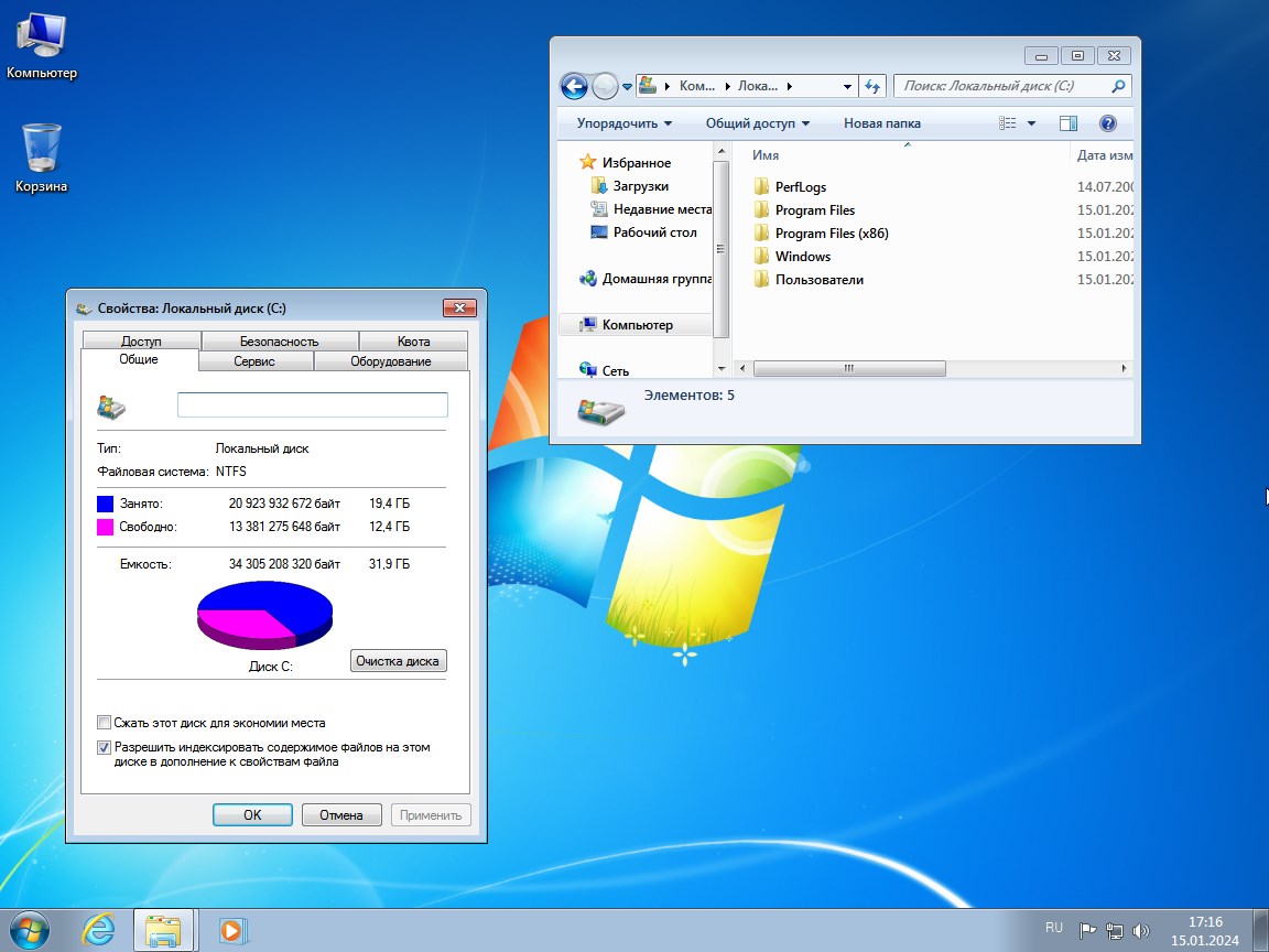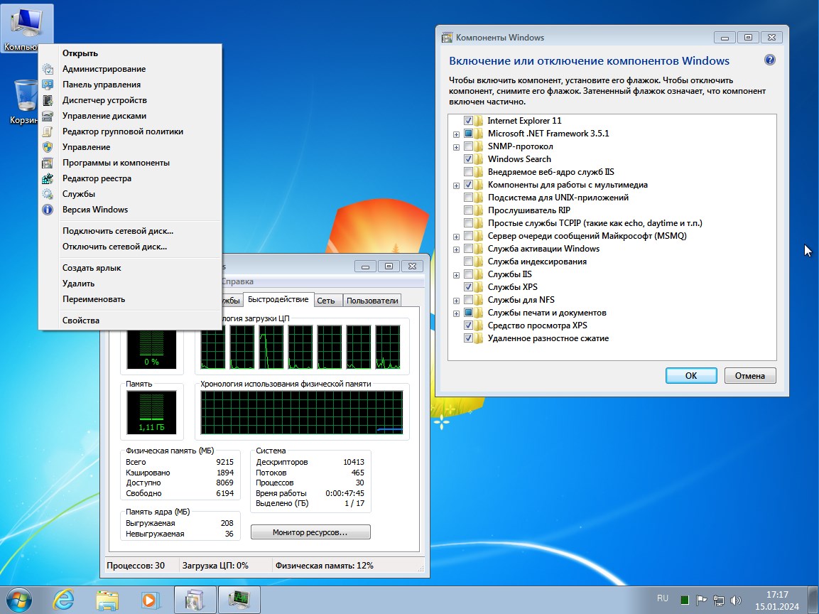 После установки система предлагает полностью готовое рабочее пространство на русском языке. Установка осуществляется стандартным способом — с флешки или диска, причём образ поддерживает как UEFI, так и Legacy режимы. В комплекте уже предустановлены 7-Zip и современный браузер, заменяющий устаревший Internet Explorer, что обеспечивает безопасный выход в веб. Пользователи могут сразу работать с архивами, управлять файлами через расширенное контекстное меню и пользоваться сетевыми возможностями. Поддержка сетевых адаптеров, включая WLAN и PCI-устройства, реализована на уровне драйверов Realtek и Intel, что гарантирует стабильное подключение к интернету. Для системных администраторов доступны функции AppLock и BitLocker, защищающие данные и контролирующие доступ к приложениям.
