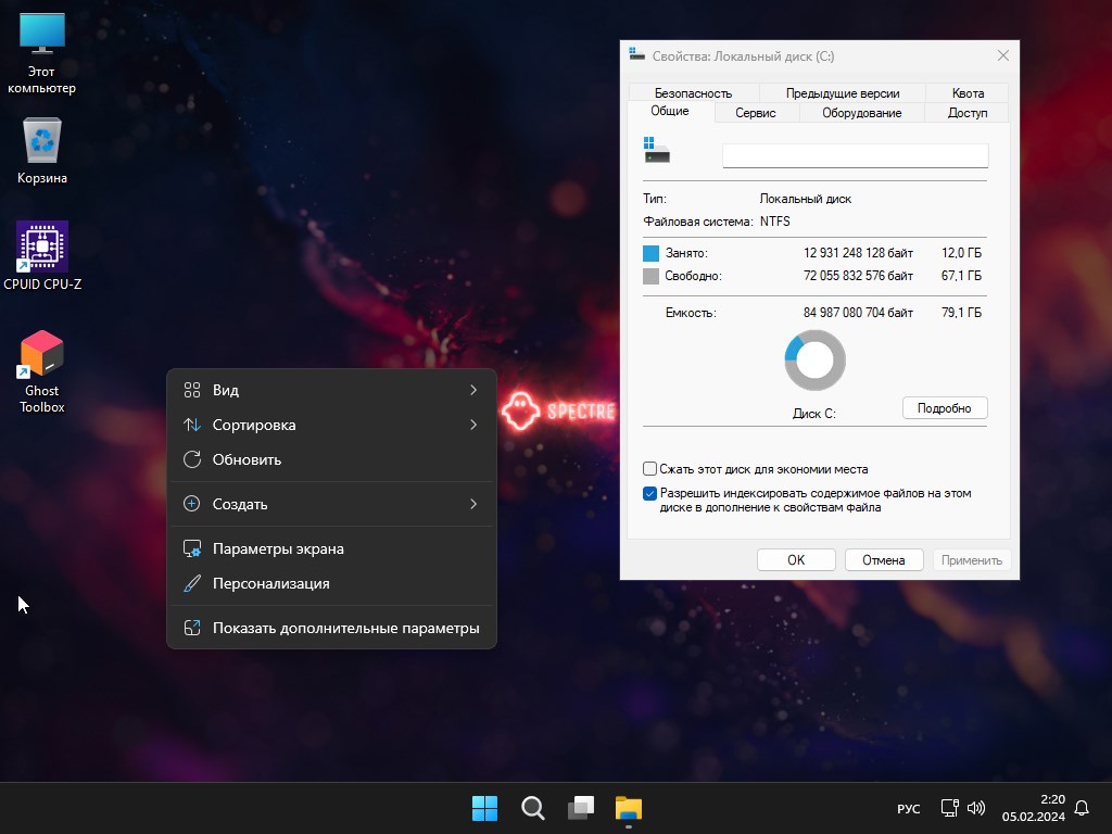 Рабочая сборка Windows 11 2024 23H2 Pro от Ghost — это стабильная и оптимизированная версия операционной системы, адаптированная под различные задачи: от офисной работы до гейминга и стриминга. Образ доступен в нескольких редакциях, включая Pro, Compact и SuperLite, что позволяет выбрать оптимальный вариант под конкретные потребности. Установка осуществляется на 64-битные компьютеры, включая ноутбуки с минимальными требованиями, благодаря встроенному обходу проверок Microsoft. Система поставляется с расширенными настройками через фирменную утилиту Ghost Toolbox, позволяя легко активировать Windows, управлять функциями и восстанавливать компоненты.