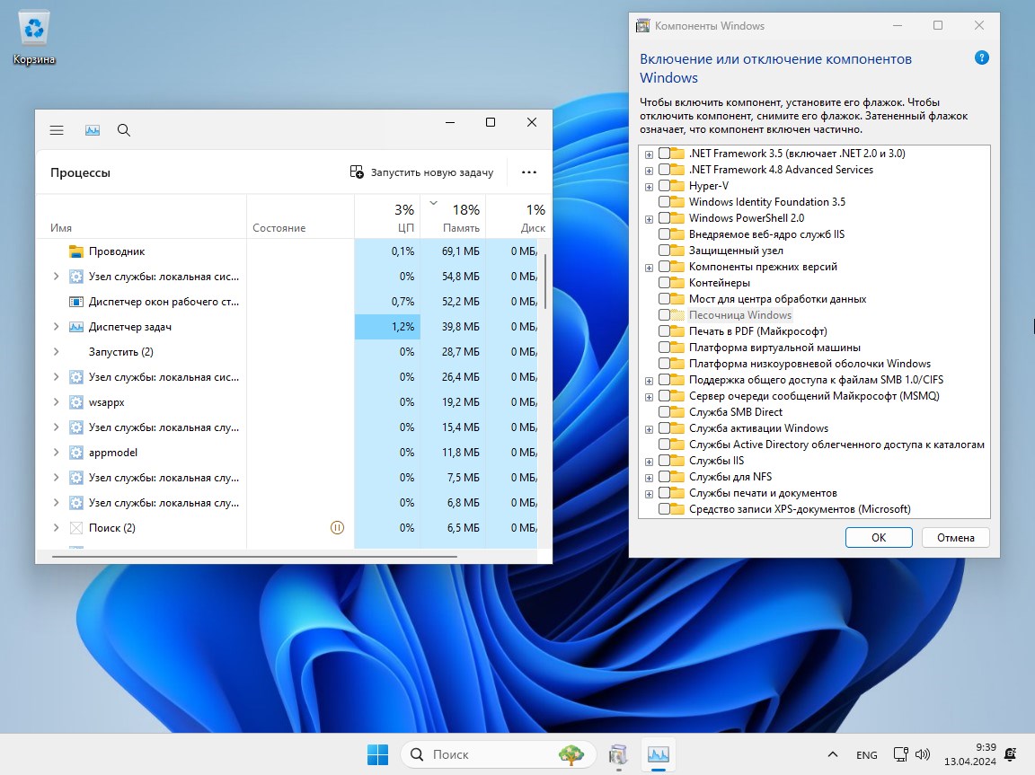 - Полностью удалён Защитник Windows и SmartScreen для высвобождения ресурсов.