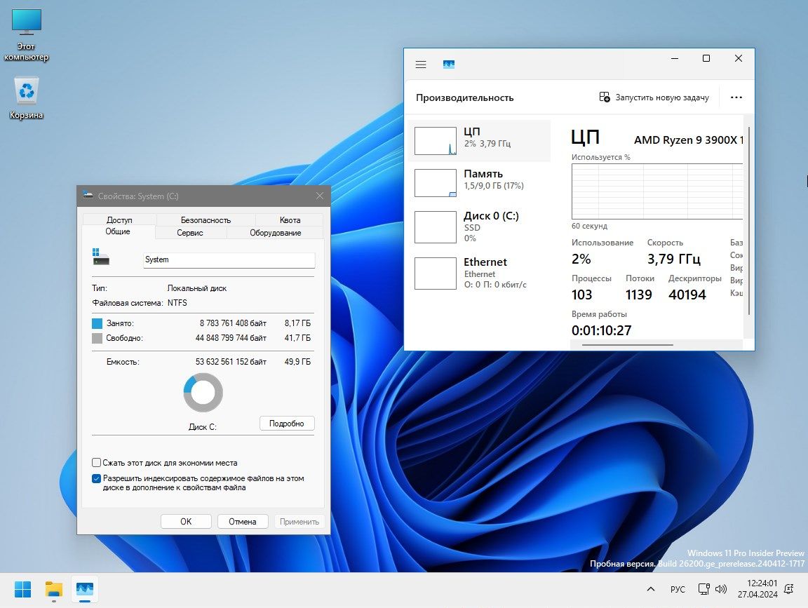 Сборка отличается высокой стабильностью и минимальным влиянием на системные процессы. Все изменения внесены без глубокого вмешательства в ядро, что снижает риск появления сбоев. Удаление WinRE и других ненужных компонентов позволило уменьшить занимаемое место на диске до 10 ГБ, что особенно полезно при установке на старые устройства с малым объёмом памяти. Windows 11 24H2 работает плавно, быстро запускает приложения, оптимизирована под использование с SSD и HDD. Энергопотребление на ноутбуках снижено за счёт отключения фоновых служб, связанных с телеметрией и синхронизацией. Удалён магазин приложений, браузер Edge, Cortana и другие элементы, вызывающие недоверие у большинства пользователей.