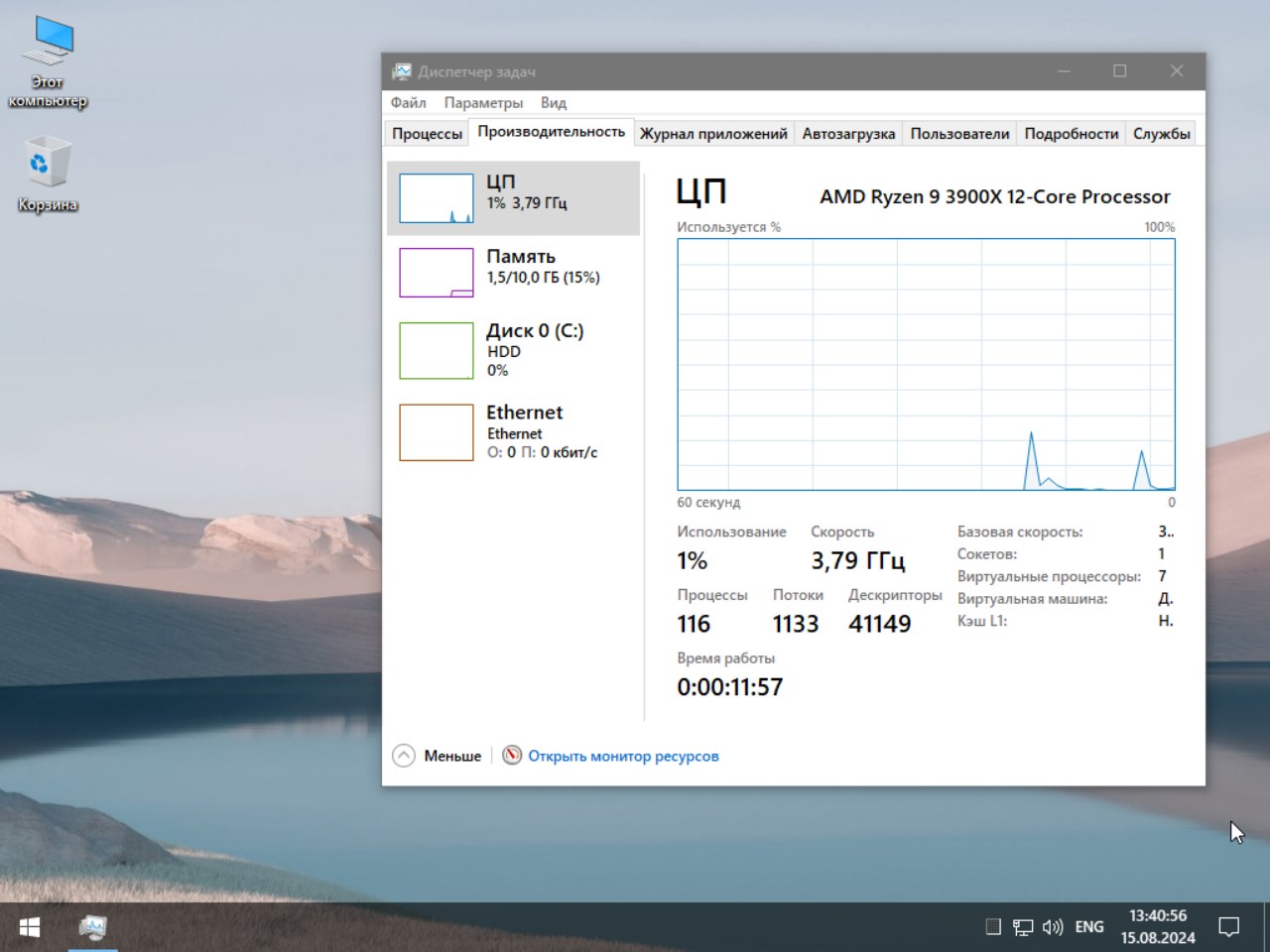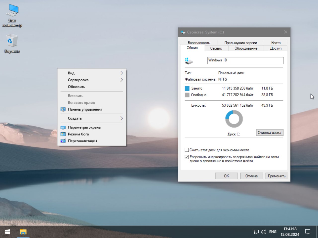 После установки операционная система запускается без необходимости ввода ключа, с уже активированной лицензией Pro. Пользователь получает стандартный рабочий стол с минимальным количеством изменений, но с рядом улучшений. Контекстное меню дополнено пунктом «Режим Бога», дающим быстрый доступ ко всем настройкам Windows. Поиск работает исправно, интернет подключается автоматически благодаря встроенным драйверам для сетевых адаптеров и Wi-Fi (включая Realtek, Intel, AMD, NVIDIA). Для видеокарт автоматически определяются базовые драйверы, но для полной функциональности рекомендуется установить актуальные версии вручную. Видеоплеер, калькулятор и просмотрщик фотографий заменены на аналоги из Windows 7 для стабильности. Экран блокировки лишен эффектов размытия, интерфейс остается лаконичным и быстрым.