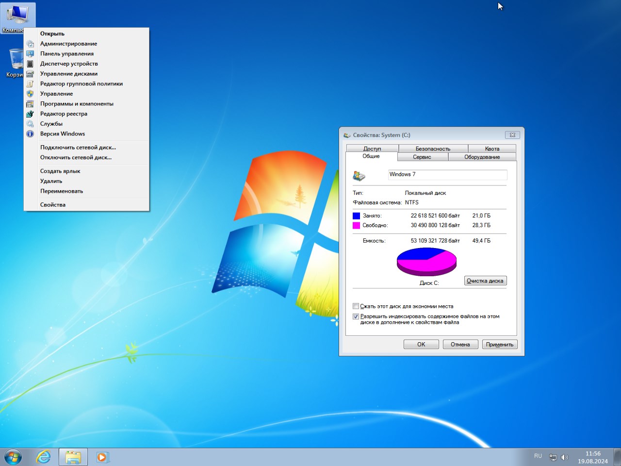 Оптимизированная Windows 7 Pro/Ultimate x64 на русском языке — это тщательно подготовленная сборка операционной системы от августа 2024 года, основанная на оригинальном образе Microsoft с интеграцией всех необходимых обновлений. Система предлагает стабильную работу, высокую производительность и минималистичный подход к предустановленному программному обеспечению. Образ поставляется в формате ISO, легко записывается на флешку и готов к установке на компьютеры с различным уровнем аппаратных возможностей.