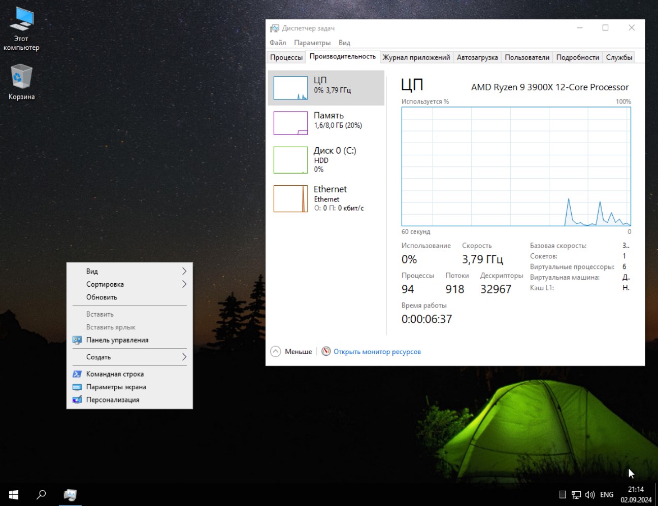- Малый объём дискового пространства — достаточно 20 ГБ, а сам образ занимает 2 ГБ