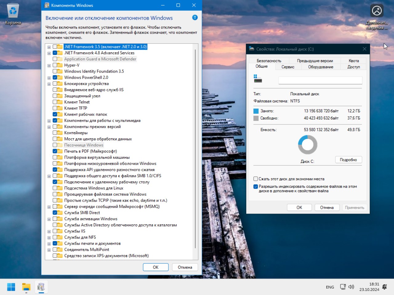 - Удалены все ненужные компоненты: телеметрия, Xbox, Edge, магазин, GameDVR и другие службы, не несущие практической пользы, что снижает нагрузку на систему и освобождает место на диске.