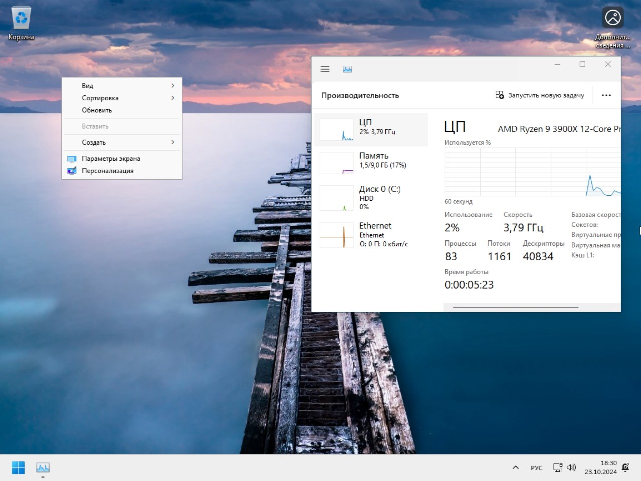 Сборка демонстрирует высокую стабильность и скорость на широком спектре устройств, включая бюджетные и устаревшие модели. Благодаря удалению телеметрии, фоновых процессов и предустановленного ПО, система потребляет меньше ресурсов, работает тише и не тормозит при многозадачности. Установка проходит без ошибок, система не требует дополнительной настройки, а автоматическая активация исключает проблемы с лицензией. При этом есть и компромиссы, связанные с упрощением функционала — например, отсутствие встроенных инструментов восстановления или браузера Edge, что может быть неудобно для новичков.