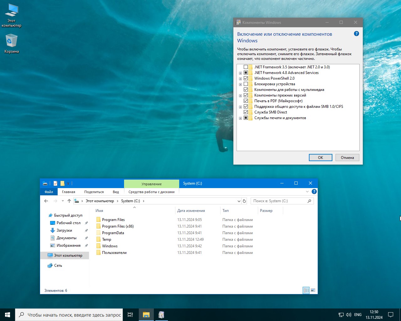 Работа с Windows 10 компактный Lite