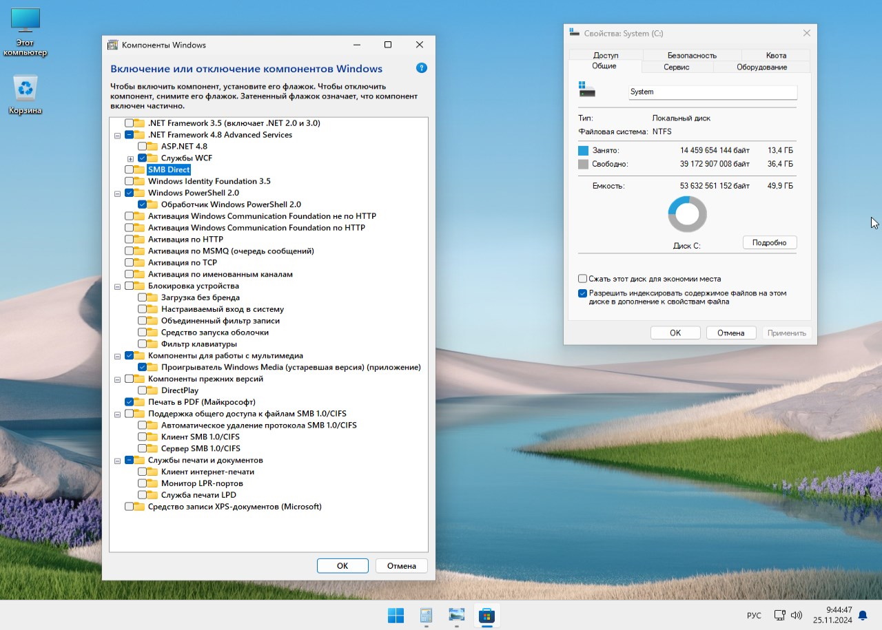 Сборка Windows 11 24H2 отличается высокой степенью оптимизации, что особенно заметно при использовании на устройствах с минимальными требованиями. Благодаря удалению фоновых служб и ненужных компонентов, система демонстрирует выдающуюся производительность: загрузка завершается за 10–17 секунд в зависимости от железа, а потребление оперативной памяти не превышает 1.5 ГБ. Отключение восстановления системы и резервирования места под обновления освобождает до 10 ГБ на жёстком диске. Однако отсутствие встроенного антивируса требует от пользователя самостоятельной установки стороннего решения. Также удалён Microsoft Store, но его можно вернуть через командную строку. Все изменения выполнены гибко, без нарушения системной целостности.