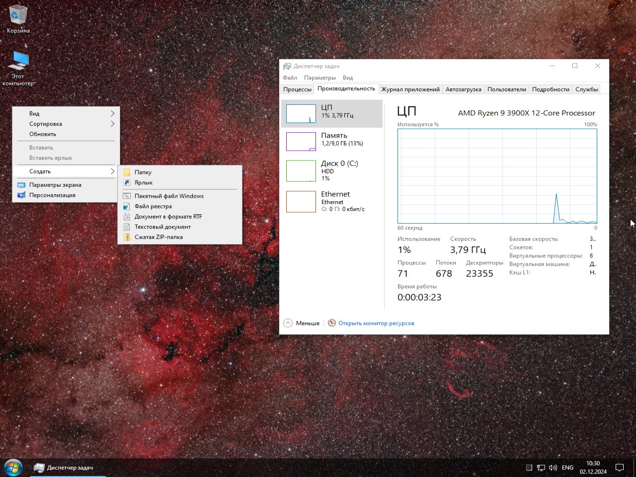 - Проведена отключение телеметрии, удаление OneDrive, Edge и встроенного Защитника Windows.