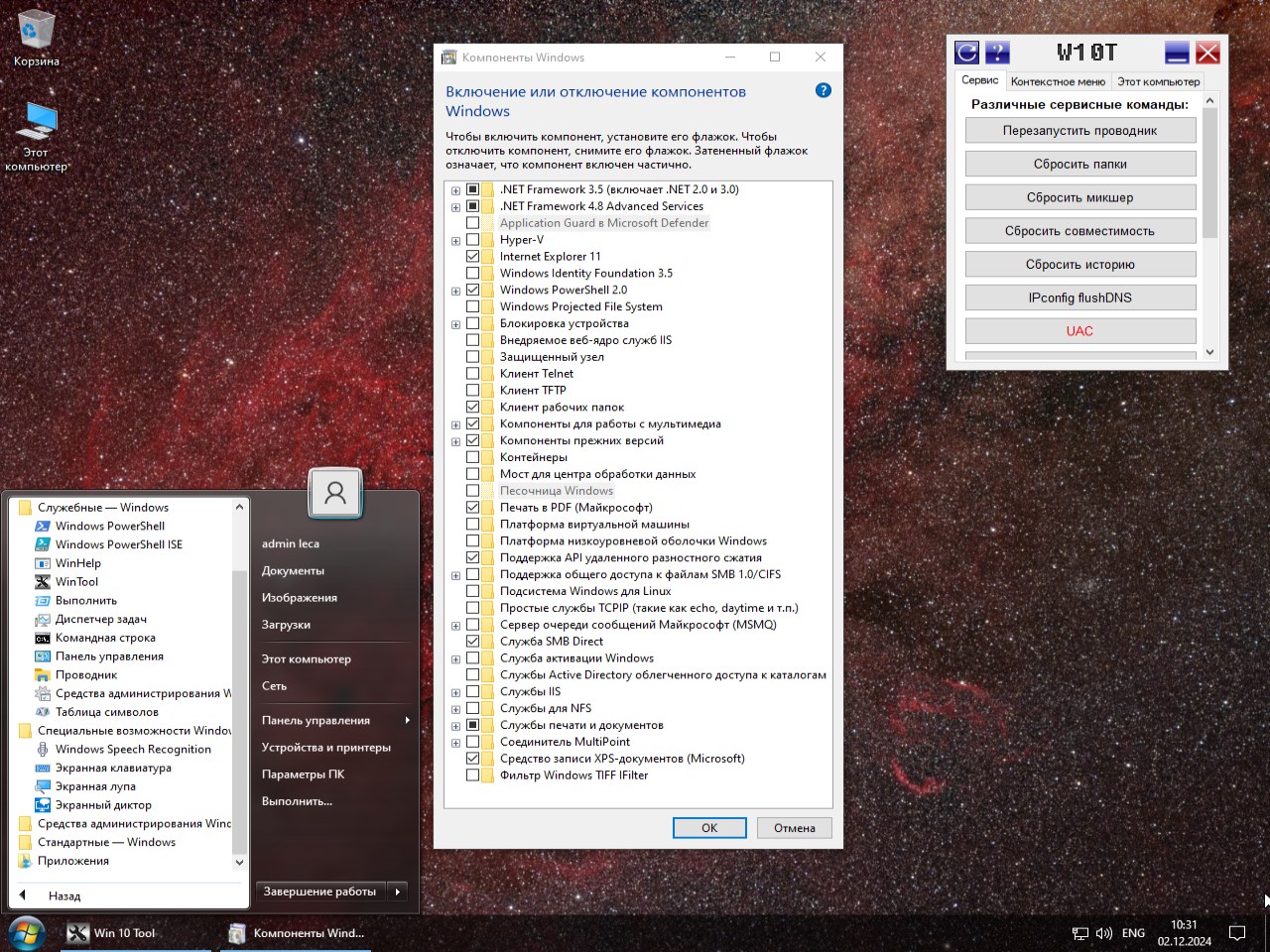 - Включены актуальные компоненты, включая .NET Framework и DirectPlay, для совместимости с приложениями и играми.