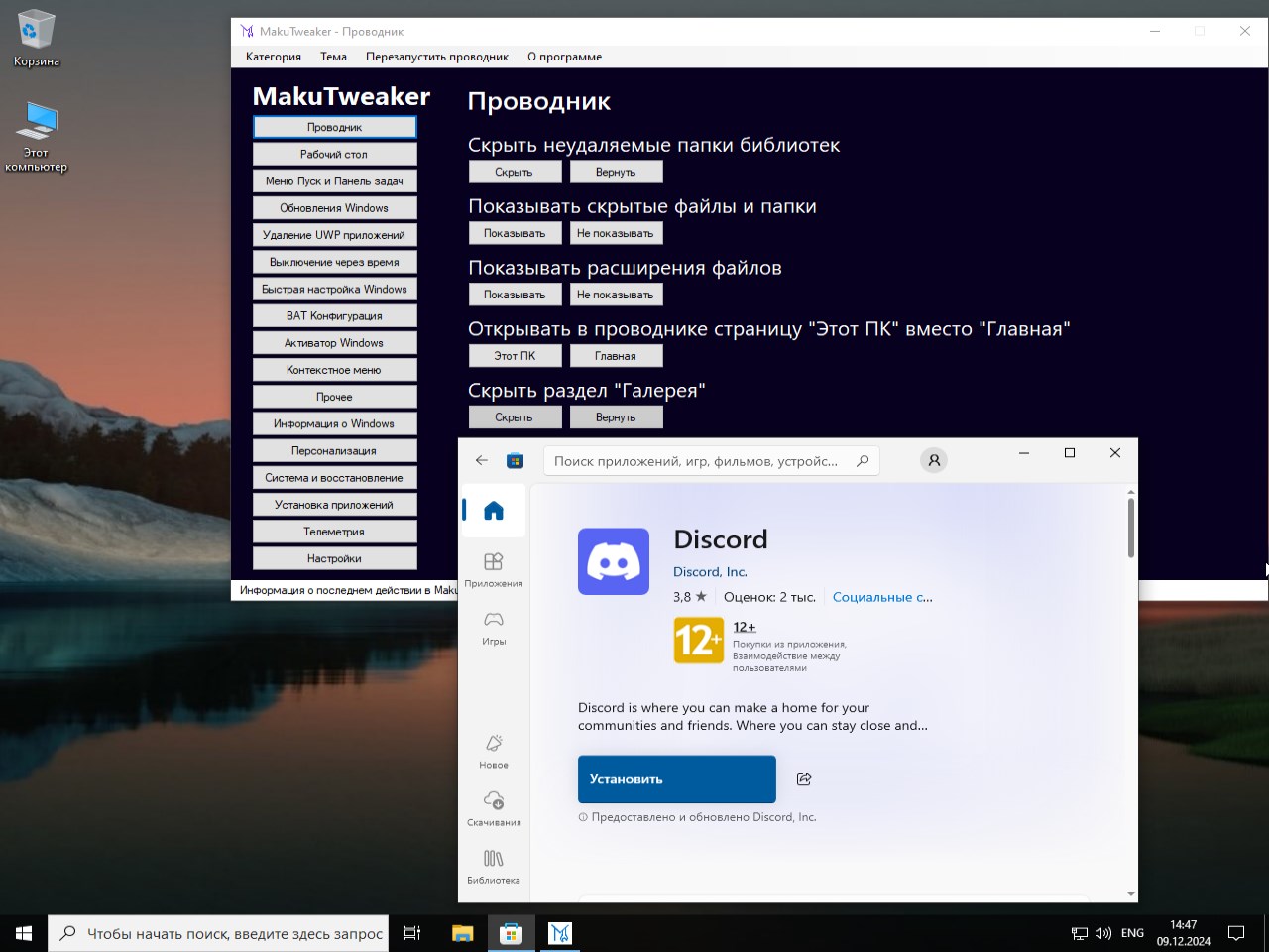 - Наличие настроенного твикера на рабочем столе позволяет детально оптимизировать систему под индивидуальные нужды.