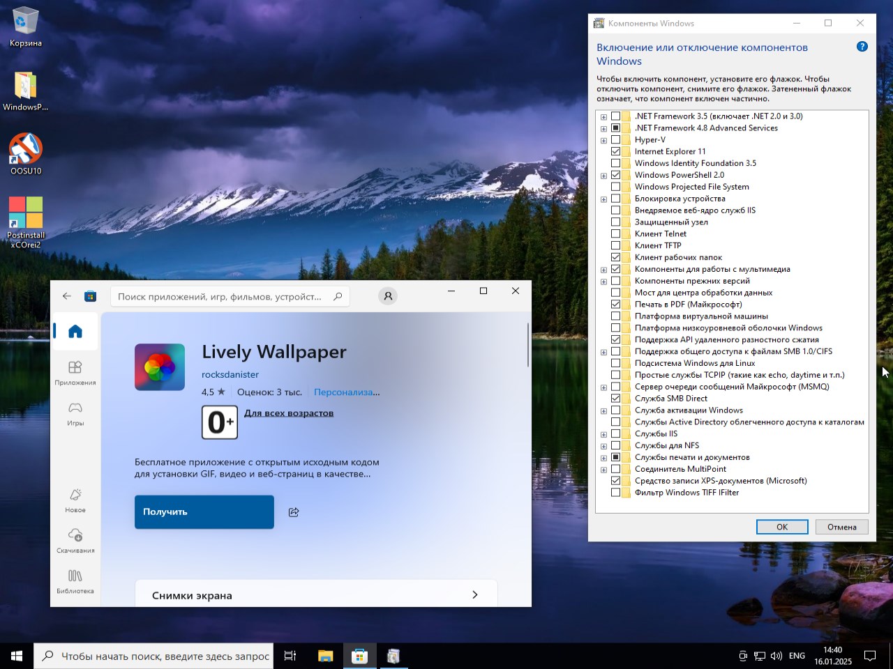 После установки системы на чистый раздел и первоначальной загрузки пользователь видит на рабочем столе лаунчер, через который выполняется ключевые действия: активация Windows 10 Pro x64, установка Office 2024, отключение фоновых служб и оптимизация под конкретное «железо». Можно выбрать, какие именно программы из пакета установить: WinRAR, Notepad++, qBittorrent, VLC, MSI Afterburner и другие. Отключение Защитника Windows и служб синхронизации выполняется автоматически, что делает систему более производительной, особенно на устройствах со слабыми ресурсами. Windows Update работает в ручном режиме — пользователь сам решает, какие обновления устанавливать, а какие игнорировать. Такой подход исключает нежелательные перезагрузки и конфликты с уже установленными драйверами.