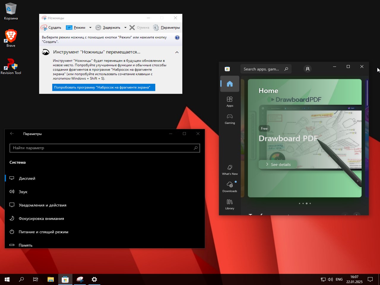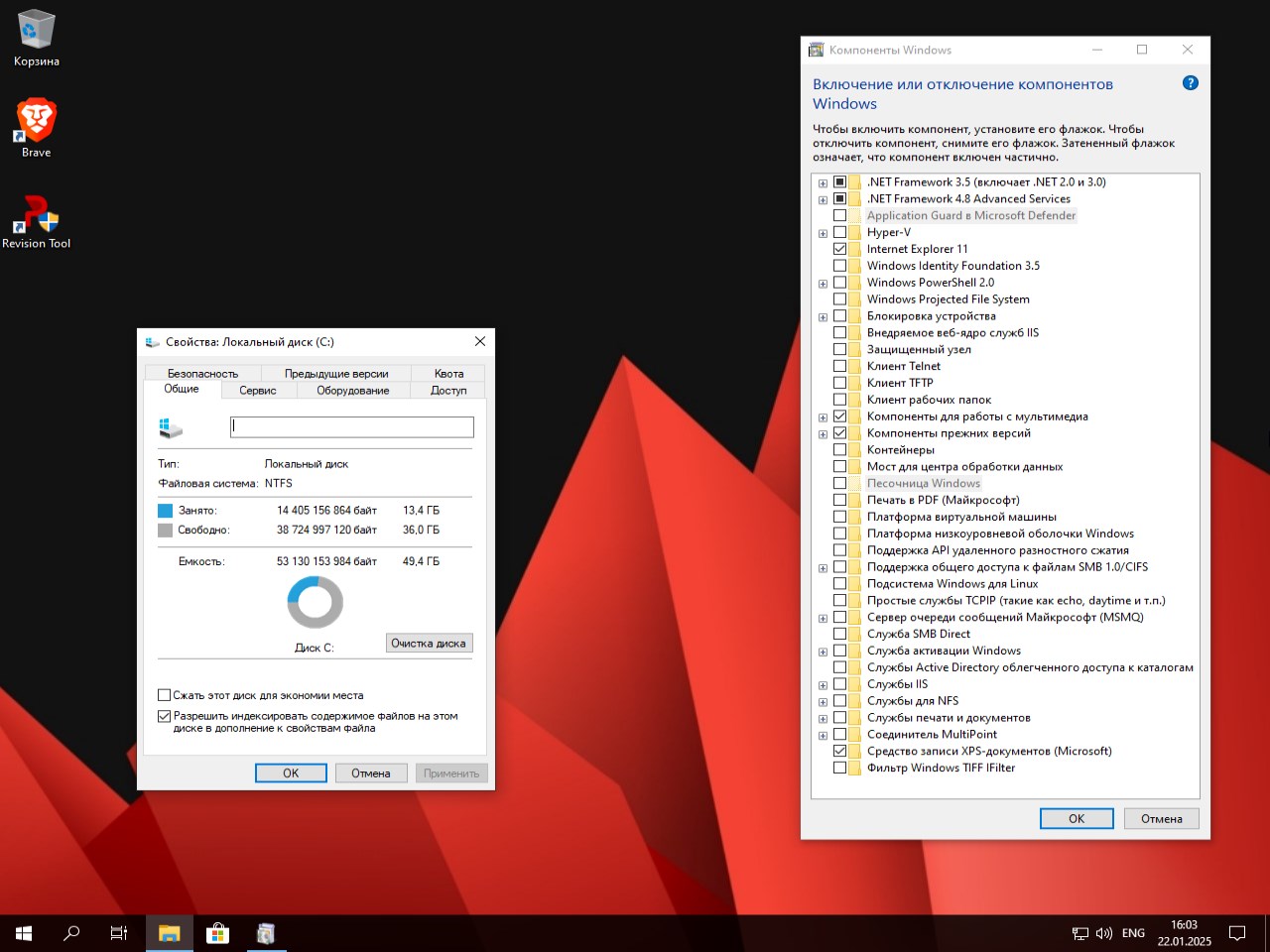 После установки на компьютер или ноутбук, система автоматически запускает внутренний скрипт настройки, который выполняет финальную оптимизацию и завершает интеграцию компонентов. В этот момент на экране отображается командная строка — вмешиваться в процесс не требуется. По окончании скрипта произойдёт перезагрузка, после которой вы получите полностью готовую к использованию Windows. На рабочем столе размещена фирменная утилита для тонкой настройки: через неё можно активировать защитник Windows, изменить параметры безопасности, отключить UAC или настроить систему под режим игр. Для геймеров реализована специальная оптимизация, включающая в себя возможность мониторинга производительности и быстрого переключения профилей через Game Bar. Также в комплекте присутствует браузер Brave с усиленной приватностью и альтернативный обозреватель для удобства серфинга в сети.