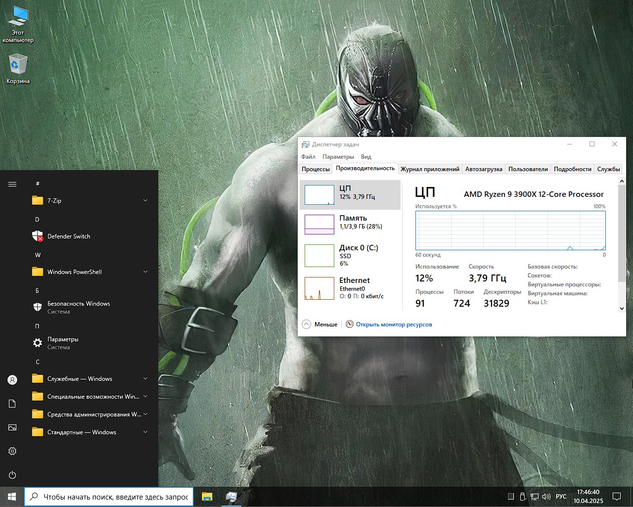 - Отключены все ненужные службы, включая телеметрию, контроль учётных записей и фоновый мониторинг, что положительно сказывается на производительности.