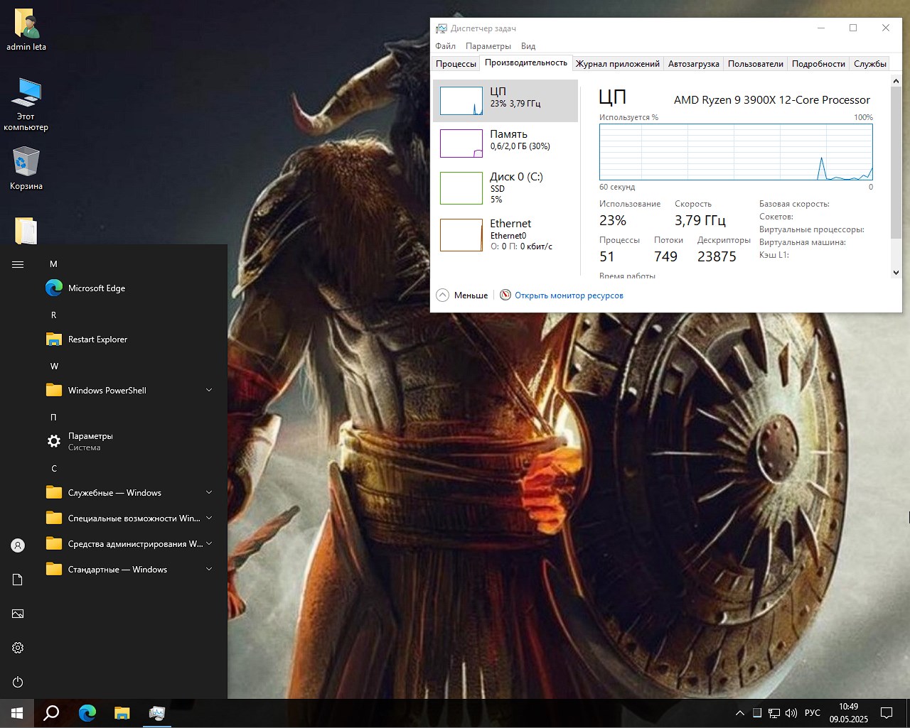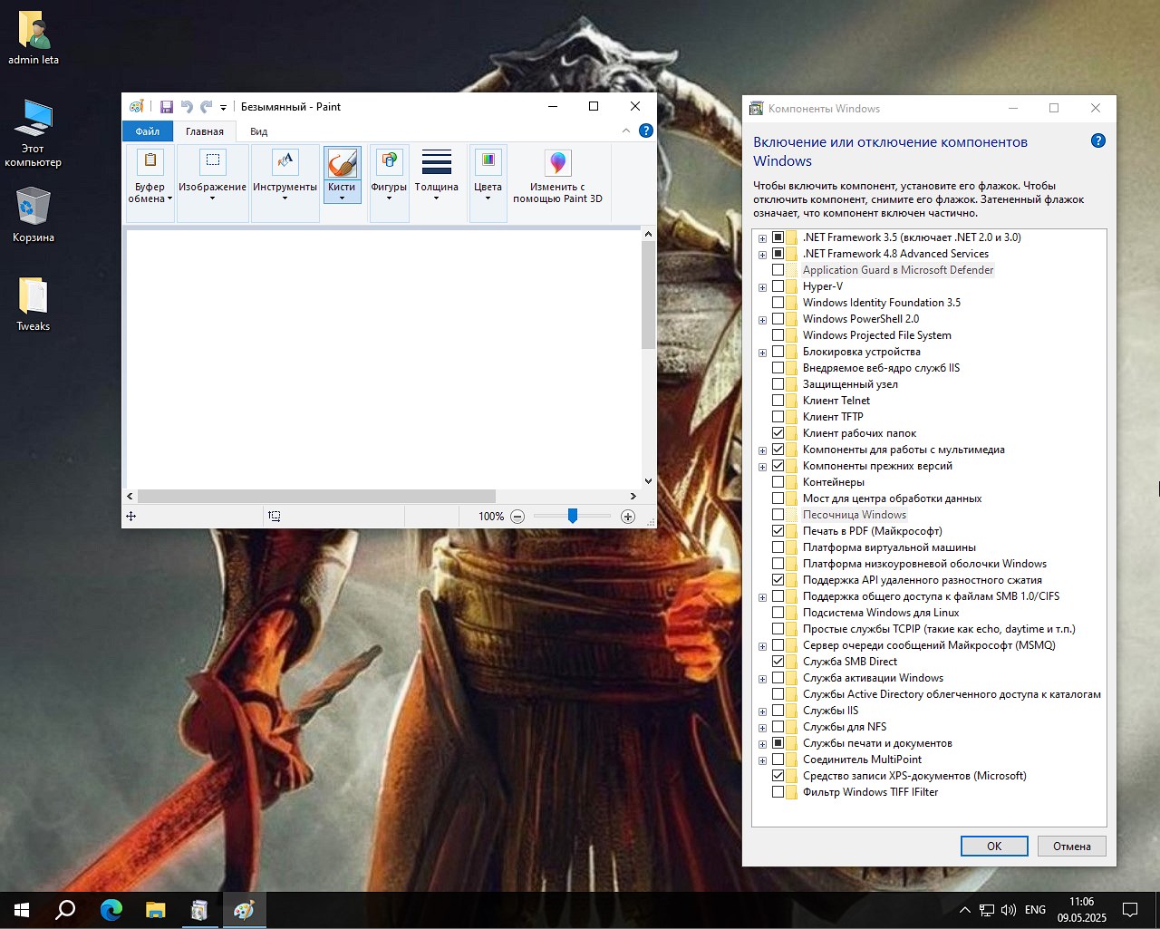 - Удалены ненужные процессы, включая автозагрузку, UAC, быстрый запуск и OneDrive